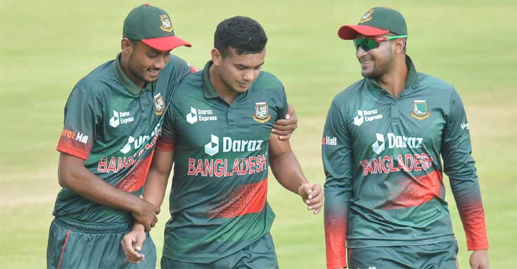 Taskin Ahmed took 5 wickets for 35 runs in 9 overs. This is the second time Taskin has met Pfeiffer in ODIs. Shakib Al Hasan took 2 wickets. Shariful and Mehedi Hasan Miraj took 1 wicket each. Keshav Maharaj, who scored 28 runs, was run out.