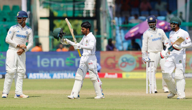 অপর ব্যাটার মুমিনুল খেলেছেন প্রপার টেস্ট মেজাজে। তুলে নিয়েছেন ফিফটি। মাঝে মোহাম্মদ সিরাজের করা ৪৬তম ওভারের প্রথম বলে আউট হয়েছিলেন আম্পায়ারের সিদ্ধান্তে। সাথেসাথেই রিভিউ নেন তিনি। স্নিকো মিটারে দেখা যায় বল ব্যাটে লাগেনি, প্যাডে ছুঁয়ে তবেই গেছে যশস্বী জয়সোয়ালের হাতে। ৪৮ রানে দাঁড়ানো মুমিনুল পরের বলেই চার মেরে পেয়ে যান ফিফটি। এরপর অবশ্য রবীন্দ্র জাদেজার এক ওভারেই দুইবার চার মেরেছেন তিনি।