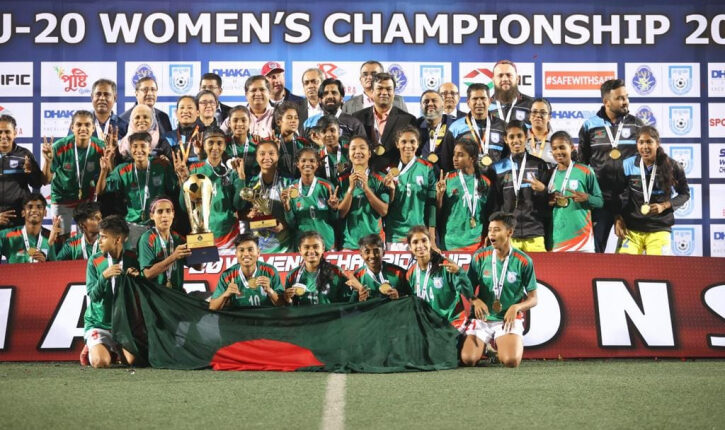 বয়সভিত্তিক নারী সাফ চ্যাম্পিয়নশিপে দুইবারের চ্যাম্পিয়ন বাংলাদেশ। দুই বছর আগে অনূর্ধ্ব-১৯ ফরম্যাটে ভারতকে হারিয়ে দ্বিতীয় শিরোপা জিতেছিল লাল সবুজেরা। বৃহস্পতিবার নেপালকে ৩-০ গোলে হারিয়ে অনূর্ধ্ব-২০ সাফ চ্যাম্পিয়নশিপে শ্রেষ্ঠত্ব ধরে রাখলো বাংলাদেশ।