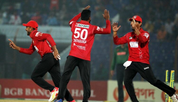 বড় স্কোর গড়তে পারেননি চতুরাঙ্গা ডি সিলভা। পাঁচে নেমে সাকিব আল হাসান শুরু থেকেই আগ্রাসী মেজাজ দেখাতে থাকেন। শেষ ম্যাচে অপরাজিত ৮৯ রানের ইনিংস খেলা সাকিব যেন সেখান থেকেই আবার শুরু করেন। কিন্তু তাকে সঙ্গ দিতে পারেননি মেহেদী হাসান মিরাজ। মিরাজ-চতুরাঙ্গা দুজনকেই ফেরান ঢাকা ডমিনেটরসের অধিনায়ক নাসির হোসেন।