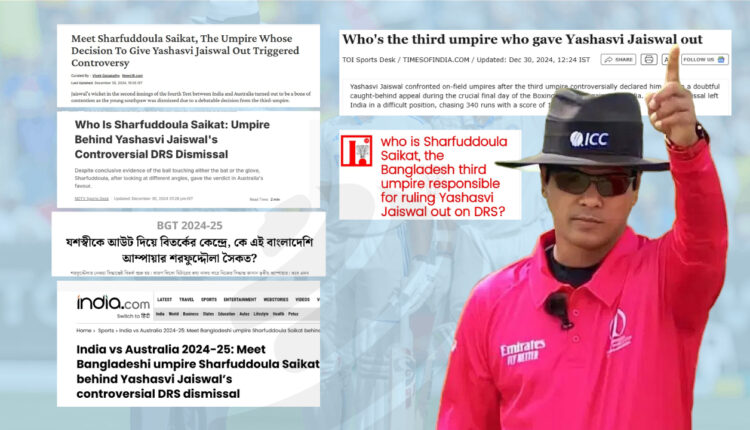 মেলবোর্ন টেস্টে স্বাগতিক অস্ট্রেলিয়ার বিপক্ষে ভারতের লড়াইয়ের শেষ আশাটুকুও শেষ হয়ে যায় যশস্বী জয়সওয়াল উইকেটের পেছনে ক্যাচ আউট হয়ে সাজঘরে ফেরার পর। ভারতীয় তরুণ ওপেনারকে আউটের চূড়ান্ত সিদ্ধান্ত দিয়ে রাতারাতি তুমুল চর্চায় ম্যাচটিতে টিভি আম্পায়ারের দায়িত্বে থাকা বাংলাদেশের শরফুদ্দৌলা ইবনে শহীদ। যাকে অনেকে চেনে সৈকত নামেও।